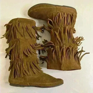 Vintage 90’s Minnetonka 3 Layer Fringe Festival Boho Western Suede Boots size 8