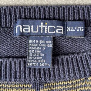 Vintage 90s Nautica Scotland Cup Sailboats Knit Pattern Sweater Men's XL Blue
