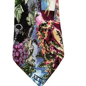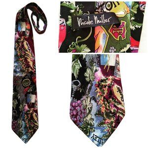 Vintage 90s Nicole Miller Silk Wine Themed Novelty Print Tie