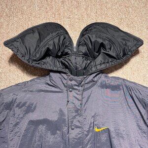 Vintage 90s Nike Dark Grey Navy Yellow Coach Puffer Long Jacket Large Zip Hood