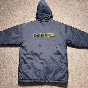Vintage Nike Dark Grey Navy Yellow Coach Puffer Long Jacket Large Zip Hood