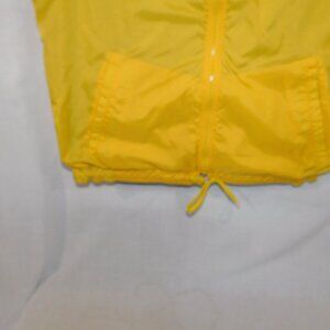 This fun Vintage 90s Men's XL NIKE Yellow Gray Reversible Full Zip Vest is in great clean bright condition. Yellow "shell" is 100% Nylon and Gray portion is 65% Polyester and 35% Cotton. Vest is machine washable. Nylon shell is windbreaker material and Gray Side is more a jersey feel. Both sides feature Nike swoosh on chest. Drawstring waist .