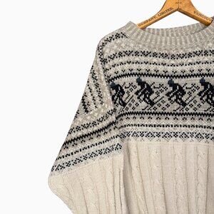 vintage ski sweater, fair isle pullover, nordic wool knit, retro winter jumper, 90s sweater style, unisex winter sweater, vintage wool blend, comfort zone knitwear, ski lodge fashion, neutral cozy knit, oversized wool sweater, made in bulgaria, novelty ski knit, retro cold weather wear, apres ski style, chunky knit sweater, vintage winter fashion, old school ski sweater, patterned wool sweater, 90s unisex knit