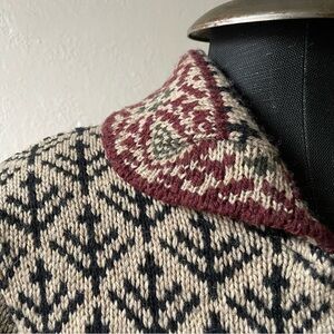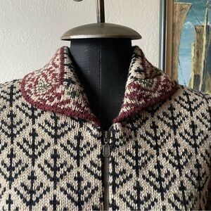 Vintage 90s Nordic inspired wool blend zip-up sweater is size small.