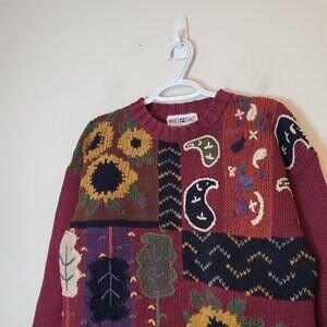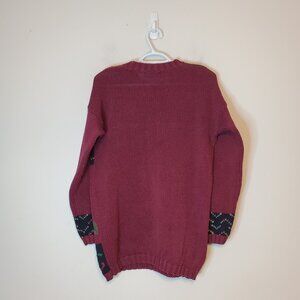 Vintage 90s Patchwork Patterned Fall Knit Sweater Red Size M