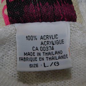 This Womens Large Vintage 90s Perspective Classic Colour Block Black White Embroidered Flowers with Faux Pearl Centers Sweater is in Great clean condition. Sweater is 100% Acrylic - Machine washable.