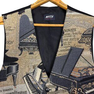 This vintage Match vest is a stunning tapestry-style piece featuring a grand piano and classical music motif—ideal for musicians, music teachers, or anyone with a love for timeless style and vintage charm. Rich in texture and visually captivating, this vest combines retro sophistication with artistic flair, making it a perfect statement for concerts, recitals, or unique everyday styling.