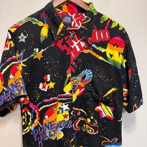 Vintage 90s Planet Hollywood Space Neon Aloha Hawaiian Shirt Small Rainbow