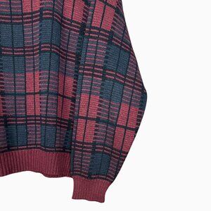 Vintage 90s Puritan Plaid Knit Grandpa Sweater Burgundy Crewneck Pullover