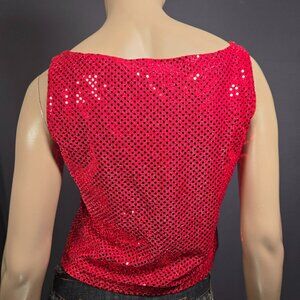 Vintage 90s Red Sequin Shimmer Top Size M Sleeveless Party Going Out Rave