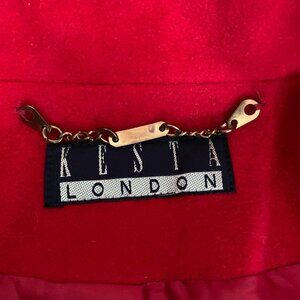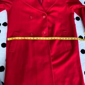 This Vintage 90s Wool Cashmere Overcoat Trench Coat is a stylish and classic piece for women in size 14. Made with wool cashmere blend outer shell, lined with polyester, and featuring a double-breasted closure with a belt for a fitted look. Perfect for various occasions including travel, parties, casual outings, formal events, workwear, and business meetings. The coat is designed with a long length, full sleeves, and a solid vibrant red color, suitable for most seasons. With its preppy style and vintage appeal, this coat is a versatile and timeless addition to any wardrobe.
