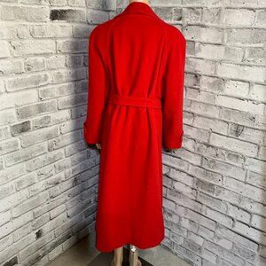 Vintage 90s Red Wool Cashmere Long Overcoat Double Breasted Belted Trench Coat