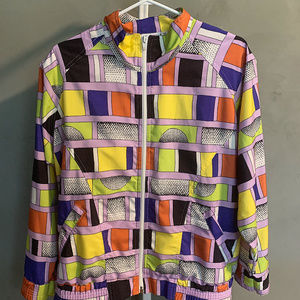 This vintage 90s style retro lightweight track jacket / windbreaker is super rad. It is an excellent all seasons jacket and great for a spring or summer look. Dope pattern.