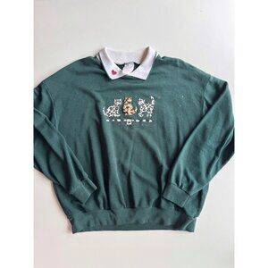 Vintage 90's STYLE STUDIO Dark Green Cat Applique Fleece Sweatshirt, Size L
