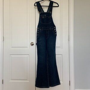 Vintage 90s Silver Jeans Flare Carpenter Denim Blue Overalls Size 5/31