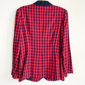Vintage 90s Simin T Moschino Plaid Check Print Red Navy Blue Classic Blazer S
