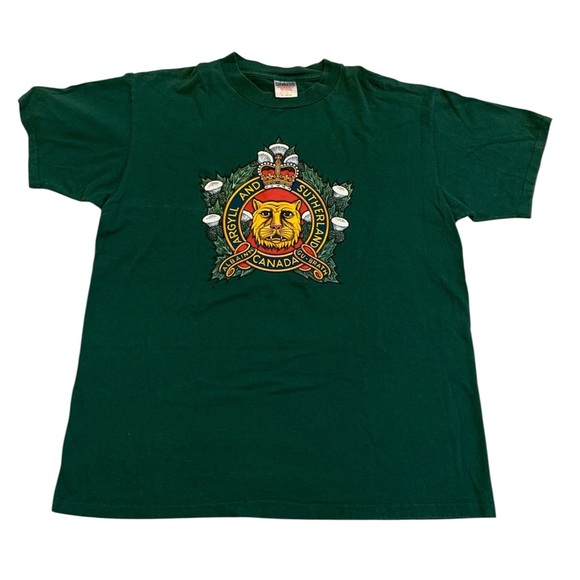 vintage, 90s, Oneita Power-T, single stitch, made in USA, Argyll and Sutherland Highlanders of Canada, military, army, Canadian history, Scotland, Gu Brath, graphic t-shirt, large, XL, oversized, streetwear, military surplus, authentic, rare, collectible.