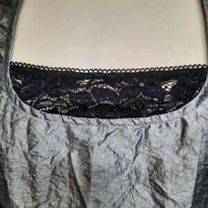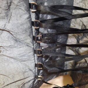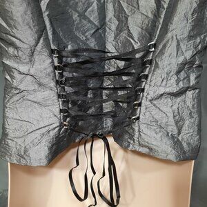 Vintage 90's silver grey/black corset top with lace trim and ribbon bow