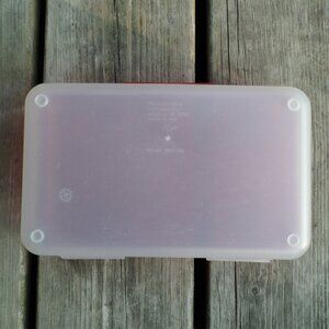 Vintage 90s Spacemaker Pencil Case 8" x 5" Clear Red Lid Hard Plastic School Box