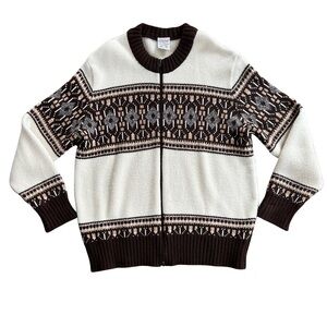 Vintage 90s St Michael Crew Neck Full Zip Fair Isle Cardigan Fishermans Sweater