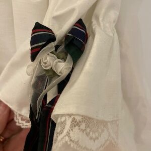 Beautiful vintage 90s storybook heirlooms ruffle party dress in size 6. This dress transforms any little girl instantly into a princess. Beautiful detailing with silk, lace and dainty pearl buttons. Faint spot on skirt but otherwise in great condition.