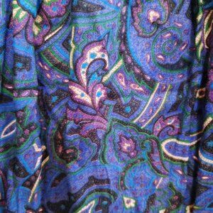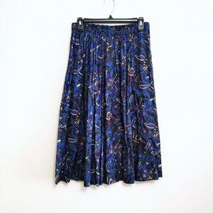 Vintage 90s Stringbean Pleated Midi Skirt Size Large Blue Floral Rayon Pull On