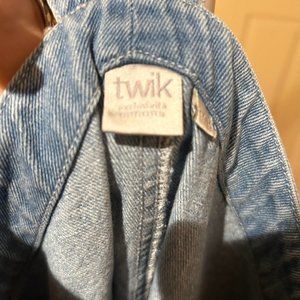 Vintage 90s Style Skirt Overalls Dress Blue Denim XS