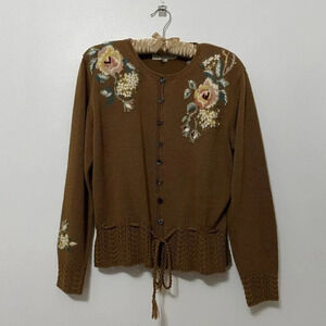 Vintage - 90’s Susan Bristol Hand Embroidered Floral Roses Cardigan