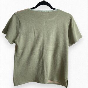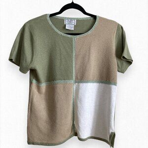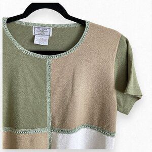 Vintage 90's T-Shirt Top Green White Beige Crochet Boho Grandma