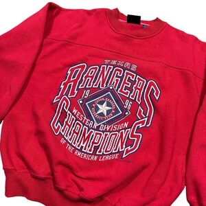 Vintage 90s Texas Rangers 1996 MLB Western Div Champions Sweatshirt Mens Large