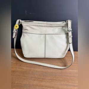 Vintage 90’s The Sak Leather Ivory Floral Lined Adjustable Strap Shoulder Bag