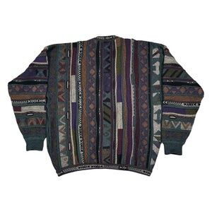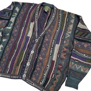 Vintage 90s Tosani Wool Coogi Style 3D Knit Grandpa Cardigan Sweater Mens XL