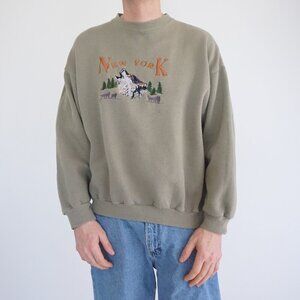Vintage '90s Tultex Olive Green Embroidered New York Wolves Crewneck sweater XL