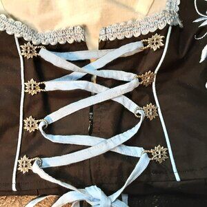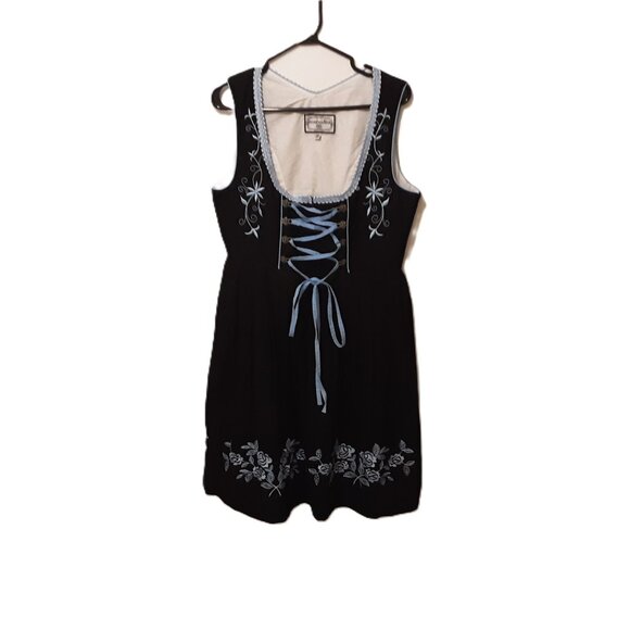 - Traditional Tyrolean/Bavarian design in classic black with light blue embroidery