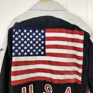 Vintage USA American flag black suede mens bomber style motorcycle jacket