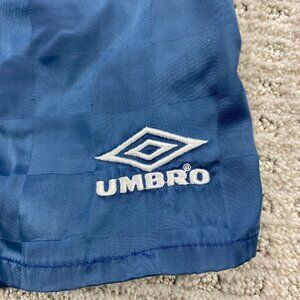 Vintage 90s Umbro Soccer Shorts Men Medium M Navy Blue Checkered Athletic 1990s