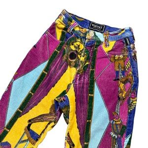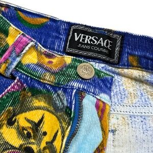 Vintage 90s Versace Jeans Couture All Over Print Clown Corduroy Pants Womens 26