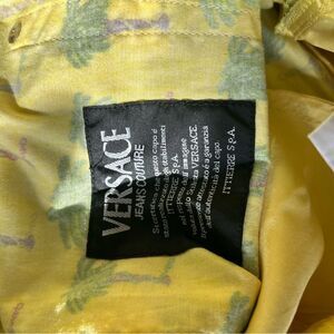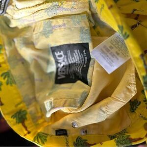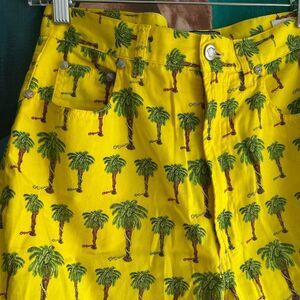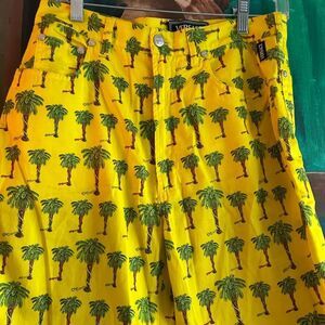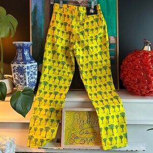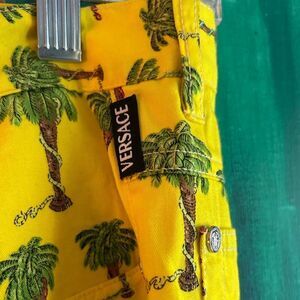 Fabulous 1990s Versace Jeans Couture palm tree yellow jeans.