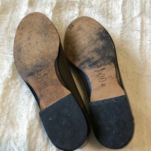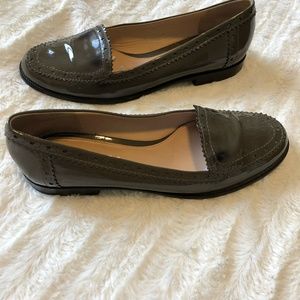 In excellent pre-owned condition, Women's size 8, Via Spiga V Rey Patent Leather Slip On Loafer in a beautiful green colour. No scuffs and light wear on the bottom. Super comfy, very grandmacore, dark academia, retro with some cute white frilly socks.