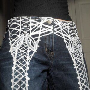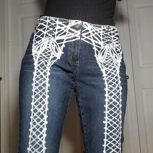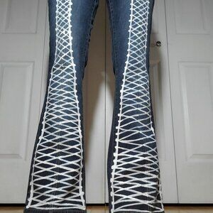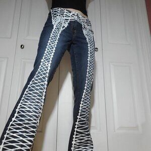 Vintage 90s Victorian corset style lace-up bow goth skeleton boot cut jeans