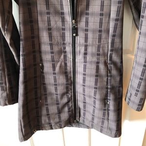 In Excellent, never worn, pre-owned condition! Women's size 6, Vuarnet France Grey Check Plaid Print Front Zip Up Trench Ski Jacket