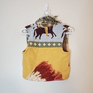 Vintage 90s Western Horse Tapestry Vest Yellow Size XS/S