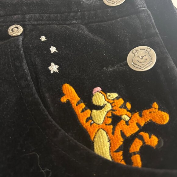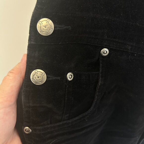 Vintage 90s Winnie the Pooh Black Velvet Velour Embroidered Overalls Sz S