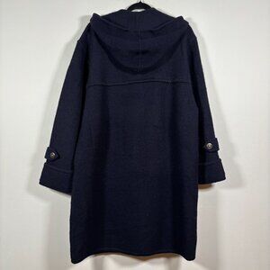 Vintage navy wool hooded coat with relaxed straight silhouette