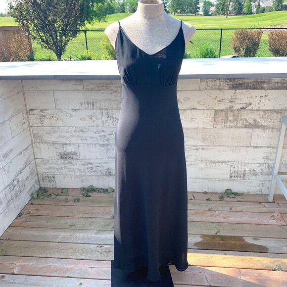 Vintage 90s Y2K Babydoll Empire Waist Maxi Slip Dress Black Chiffon Evening Gown