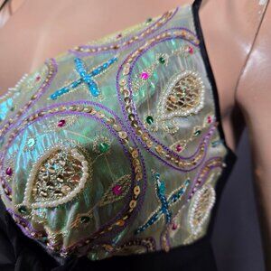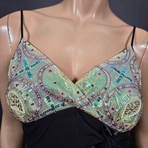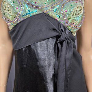 Vintage 90s Y2K Babydoll Top Size M Black Beaded Satin Sleeveless Boho Fairy