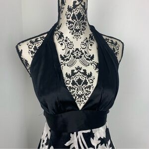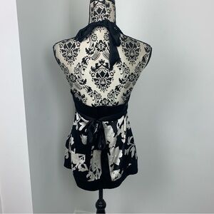 Vintage 90s Y2K Bebe Black White Floral Printed Silk Blend Halter Top Sz L