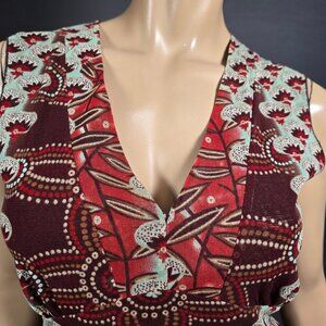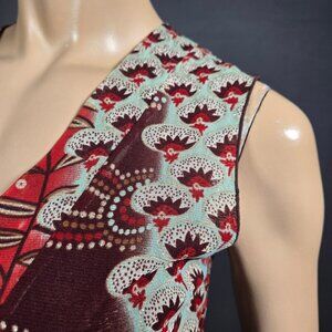 Vintage 90s Y2K Boho Print Sleeveless Mesh Top With Glitter Size L Brown