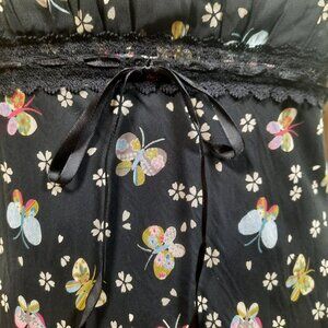 Vintage 90s Y2K Butterfly Print Dress Size S Empire Waist Black Chiffon Fairy