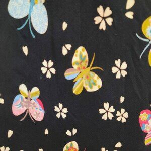 * Vintage 90's black/multicolor butterfly print below knee empire waist chiffon dress